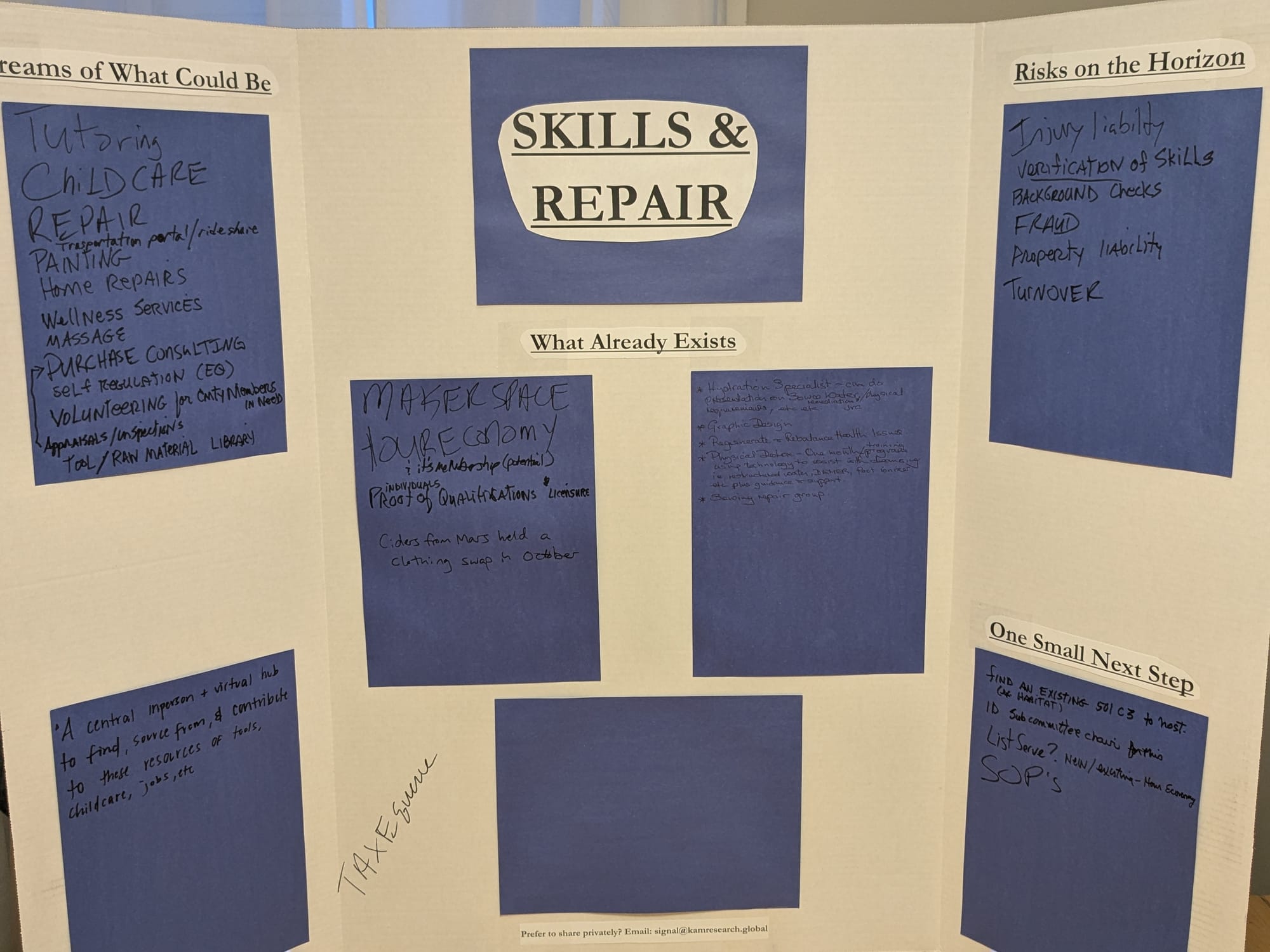 o A central in-person and virtual hub to find, source from, & contribute to these resources of tools, childcare, jobs, etc.